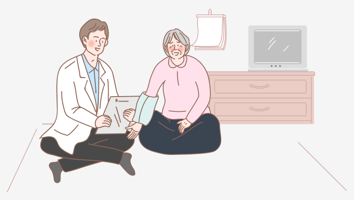 국민건강보험공단 직원이 방문하여 어르신의 심신 상태를 조사해요.