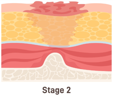 2등급 | ![]() | - 표피, 진피의 피부 손상. - 피부 궤양이 얕고 까지거나 물집의 형태 |