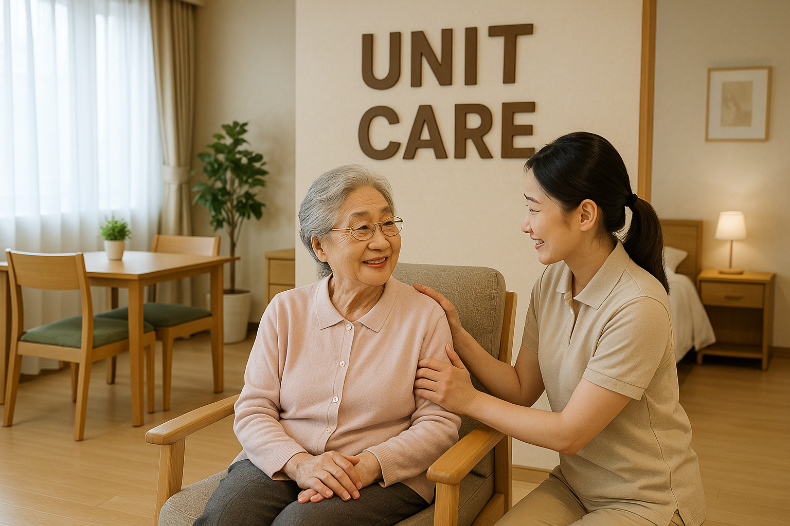 유니트케어는 요양원의 의료 지원과 실버타운의 생활 자율성을 적절히 조합한 형태로, 내 집 같은 환경에서 맞춤형 돌봄을 받을 수 있다는 점이 가장 큰 장점이에요.