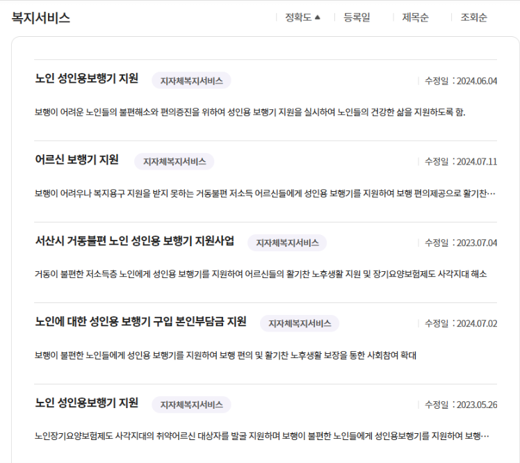 - 최근 5년 내 다른 지원 사업을 통해 이미 노인 보행기를 지원받으신 분