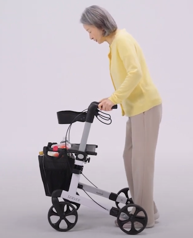 롤레이터 | ![]() | 롤레이터는 보행기 중 가장 고급형으로 가격대가 다소 있지만 방향 전환이 부드럽고 디자인이 세련됐어요. 실버카처럼 장바구니 겸 의자가 부착되어 있어요. |