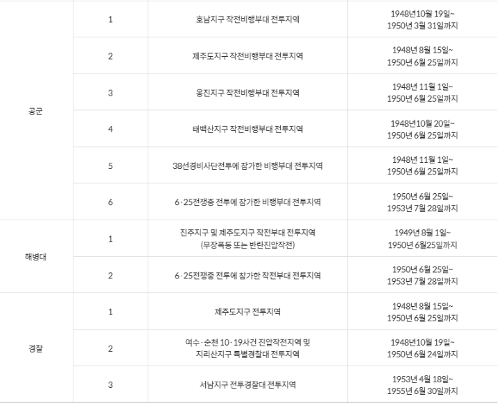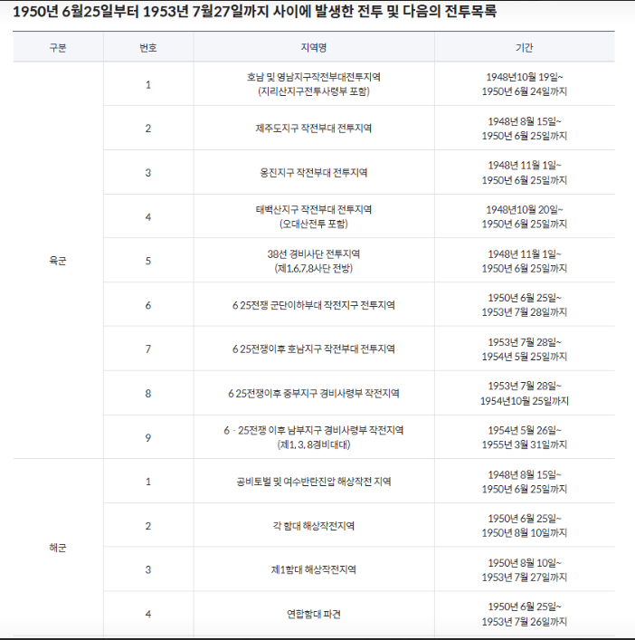 조건 | 6·25 전쟁 등의 전투에 참전하고 전역한 군인 |