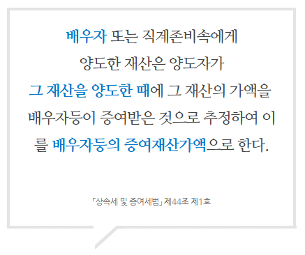 배우자 간의 재산 이전도 증여로 간주된다는 전제를 뒷받침하죠. |