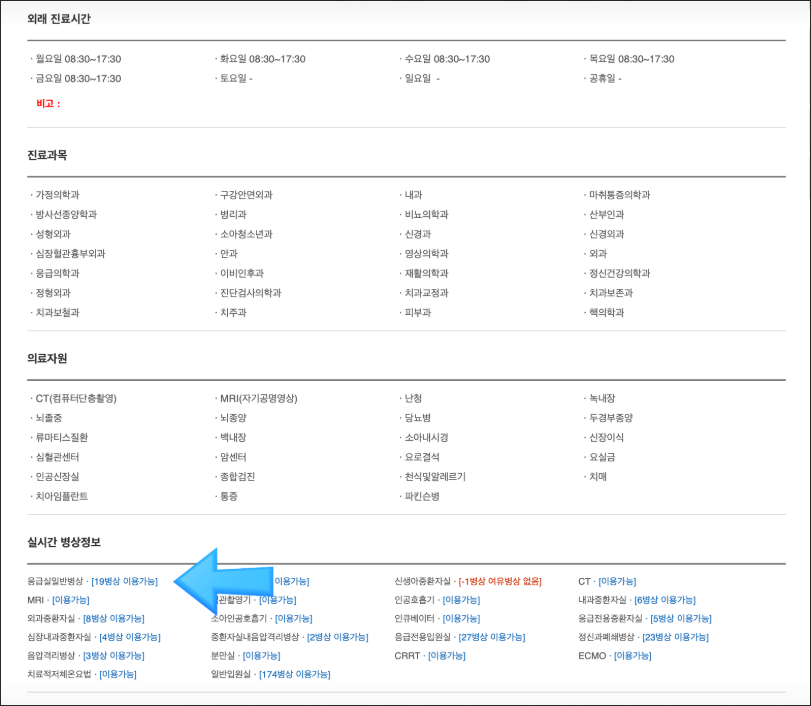4) 실시간 이용 가능한 응급실 병상 숫자 확인
